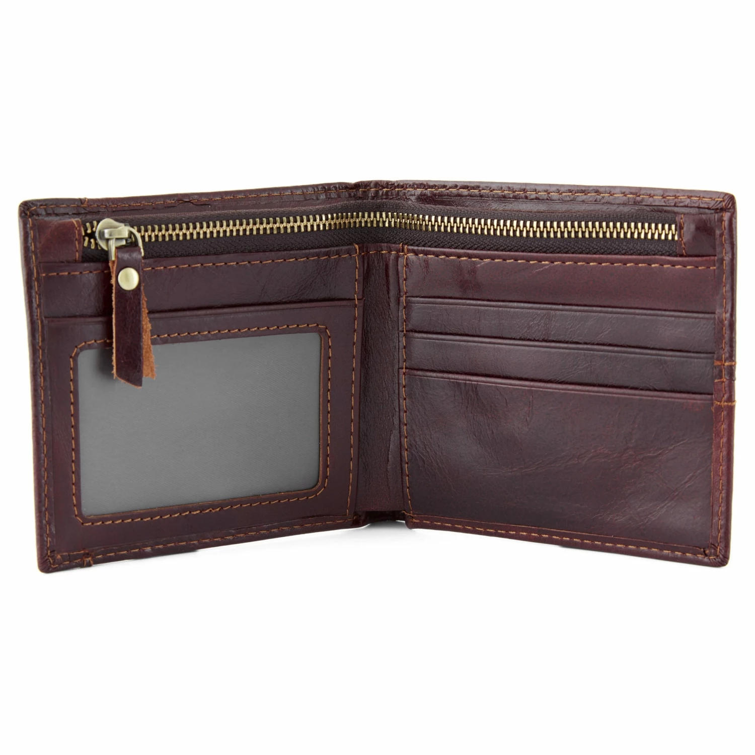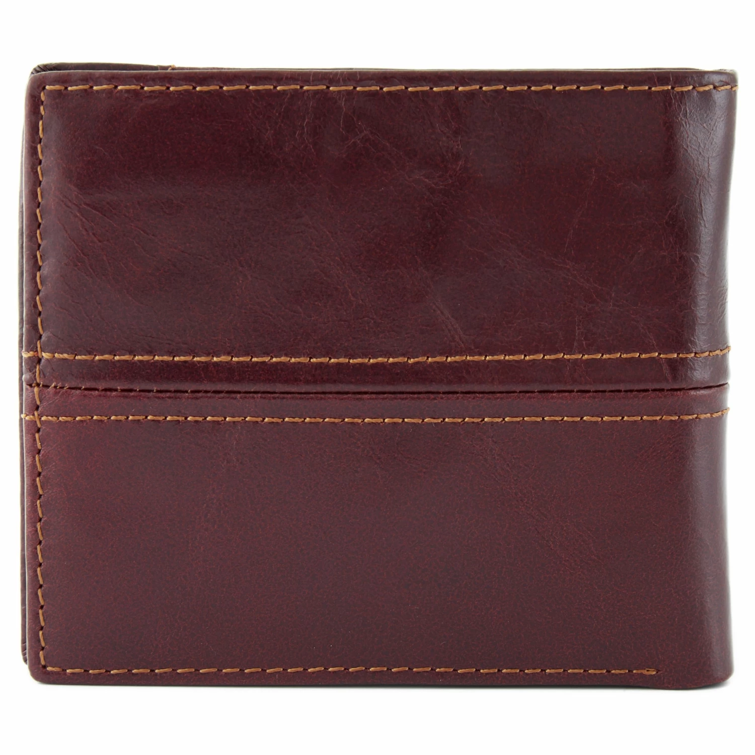 This wallet has a unique design and an elegant, vintage feel. This 100% leather wallet features two bill pockets, six card slots, and a removable ID window. It also has a protective RFID lining inside. This way, your credit and debit cards wonโt be victims to electronic pick-pocketing.