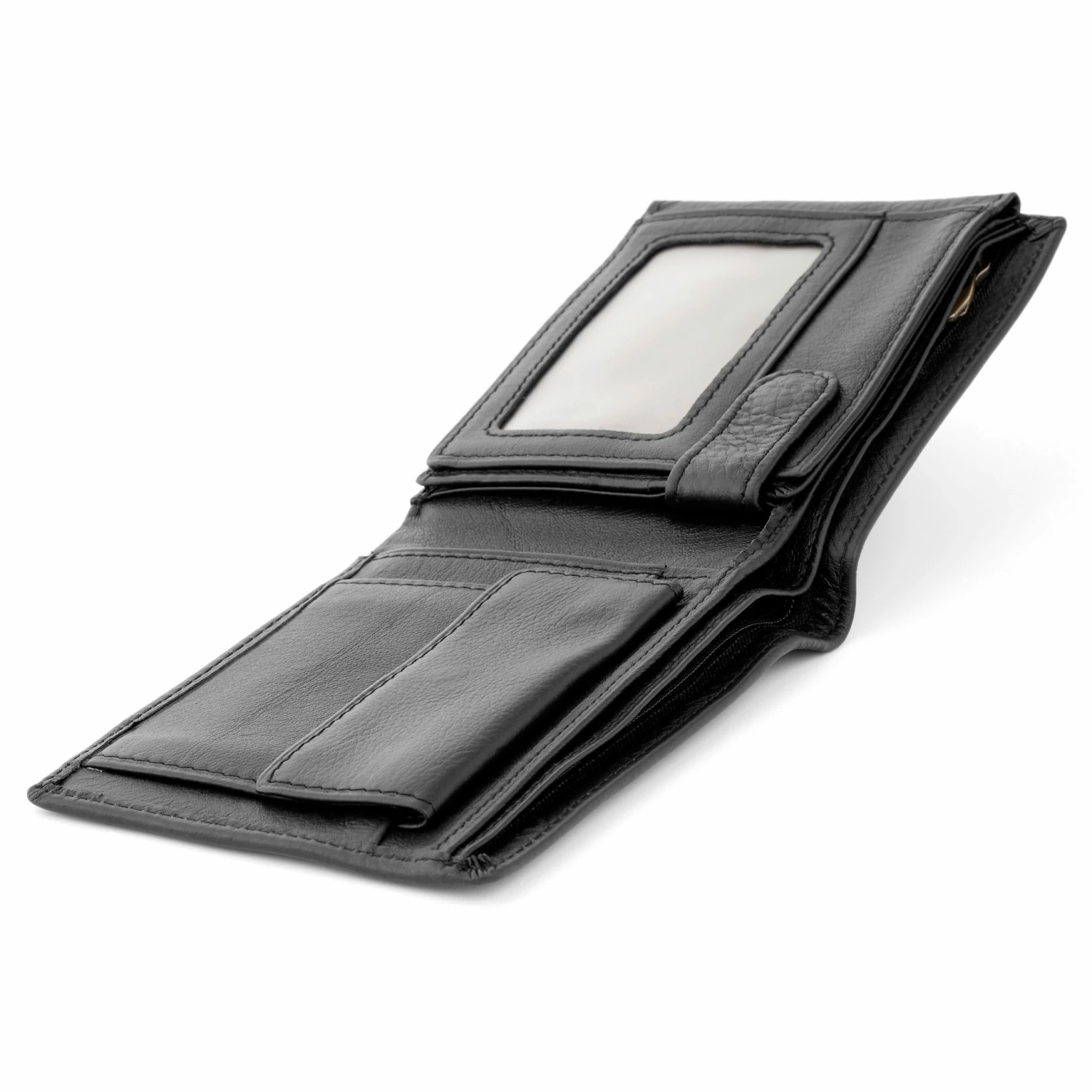 Inside the wallet, there’s plenty of space for plastic. Your change goes in a fastenable pouch. Use the clear compartment to store your photo ID.