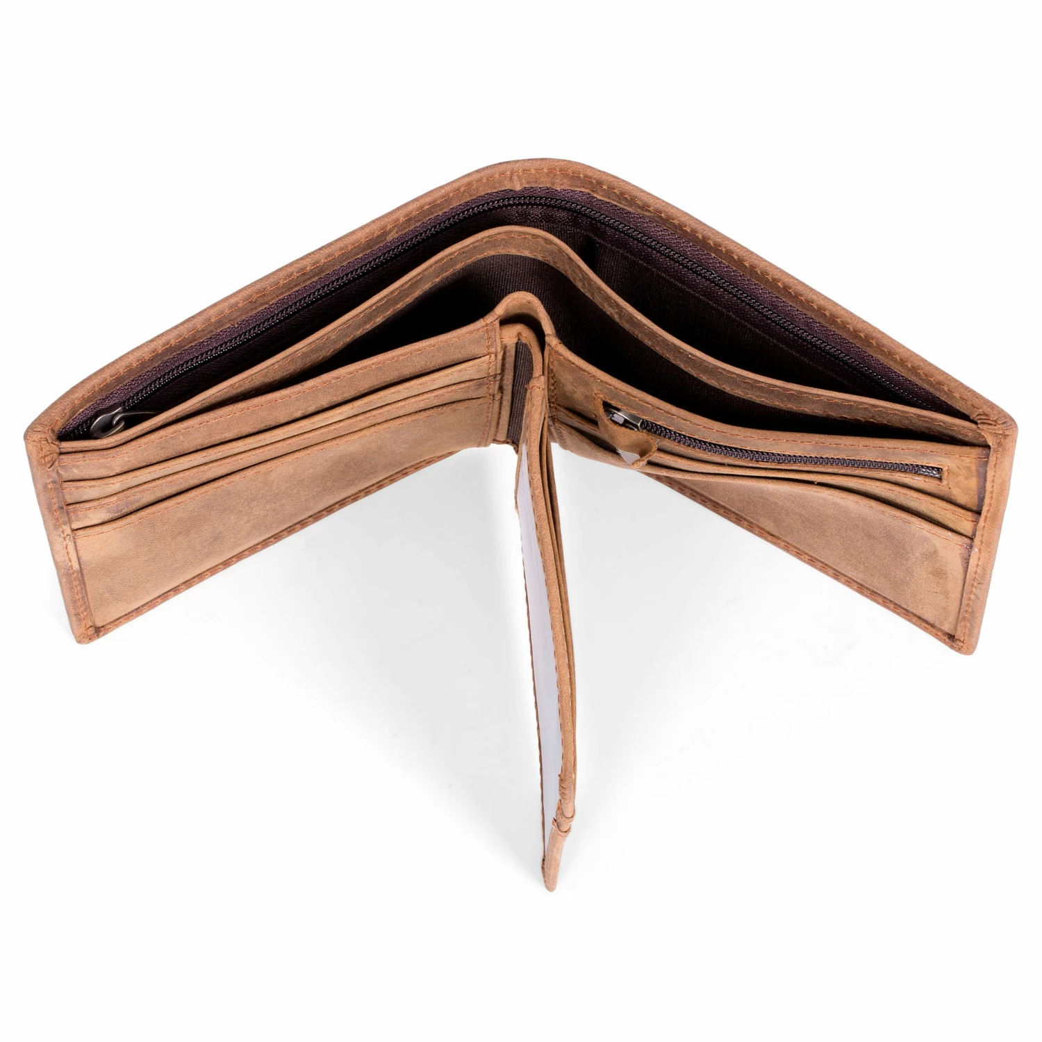 But big on style doesn’t mean short of features. Inside you have a ton of smart storage options. There are 2 full-length bill compartments, one with a “secret” zipped pocket, 5 2-card slots, 2 easy-access slip pouches for receipts and such, and a zipped coin pocket. More stuff? A removable middle section provides 2 additional card slots and 2 ID windows.