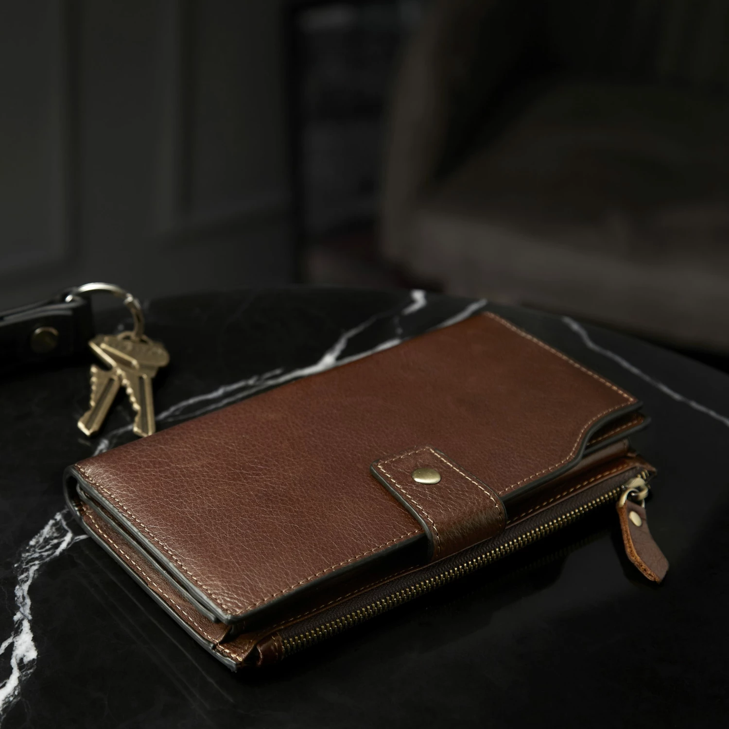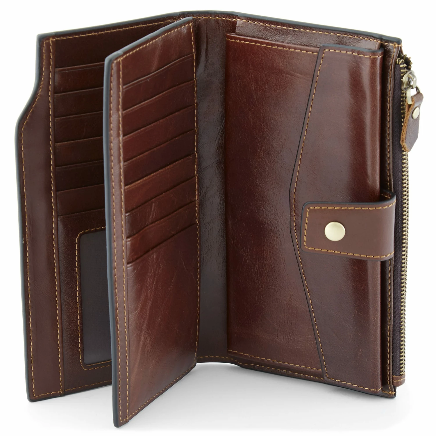 Keep your physical and digital cash safe from no good schemers and scoundrels! This vintage brown, classic looking leather wallet is designed to ward off electronic theft.