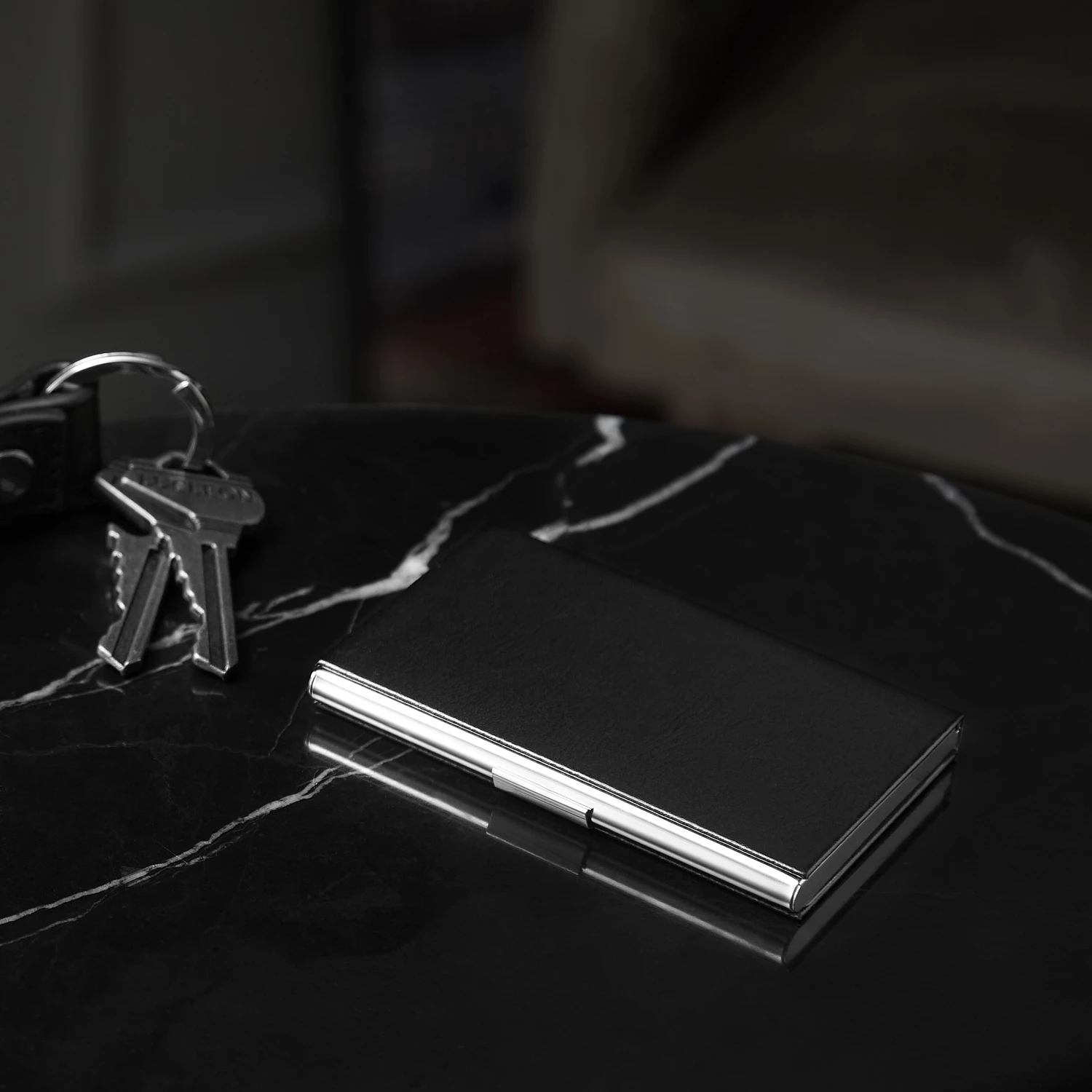 Keep your cash and cards secure with this classic cardholder. Made of genuine leather and stainless steel, you get a rugged, modern look topped with quality.