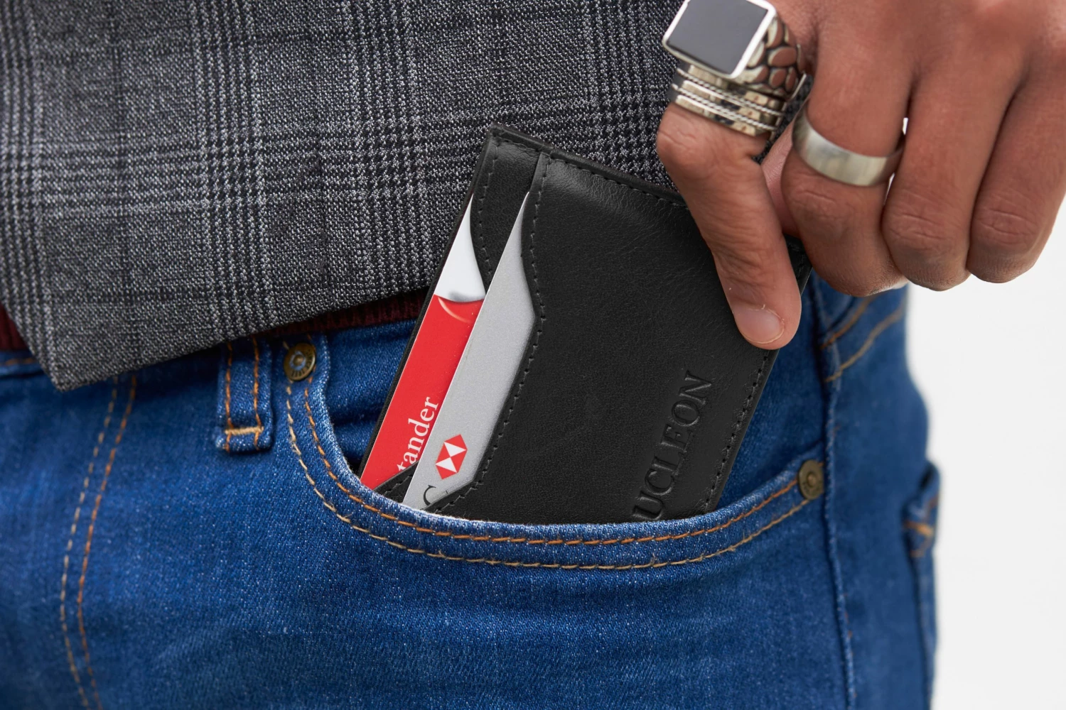 This stylishly simple cardholder is made of 100% genuine black leather and features 5 slots for carrying cards or paper money.