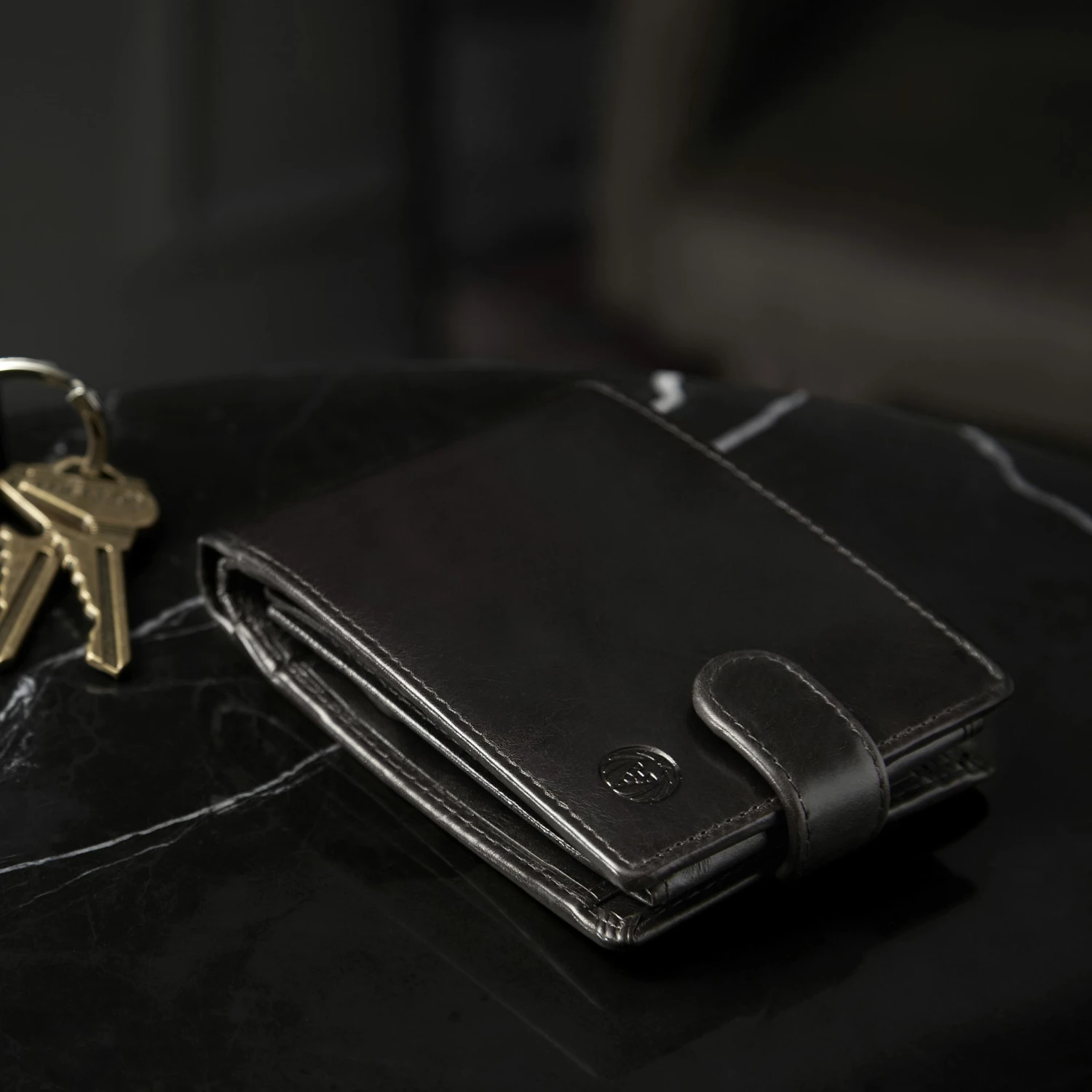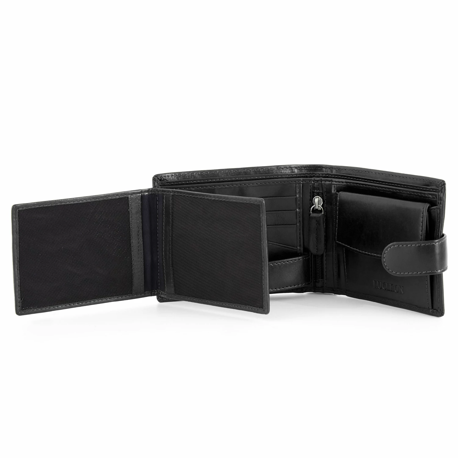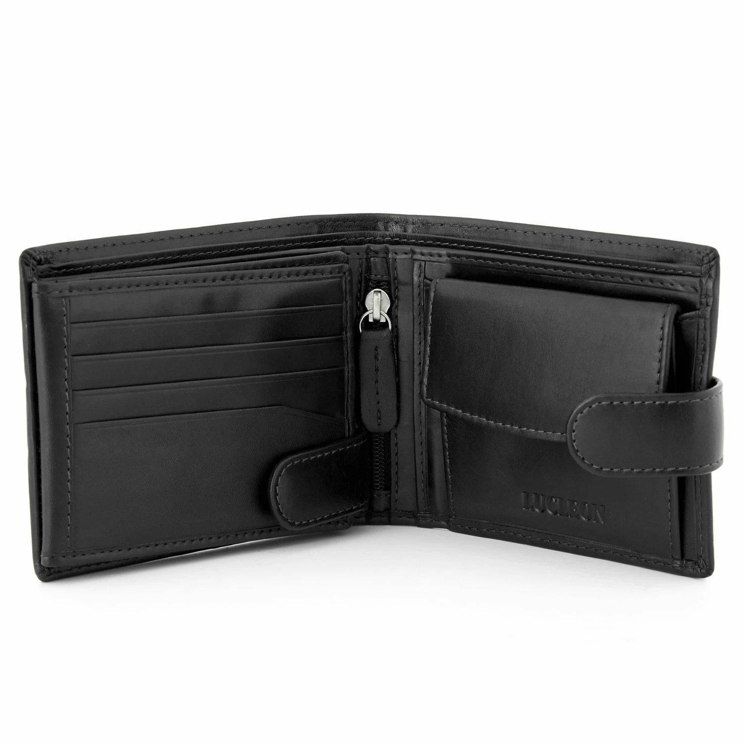 With this genuine leather wallet, you will never have to worry about space! Features 2 bill pockets, 12 card slots that can accommodate up to 2 cards each, a coin pocket, and an ID window. Offers plenty of room without bulking your pocket.