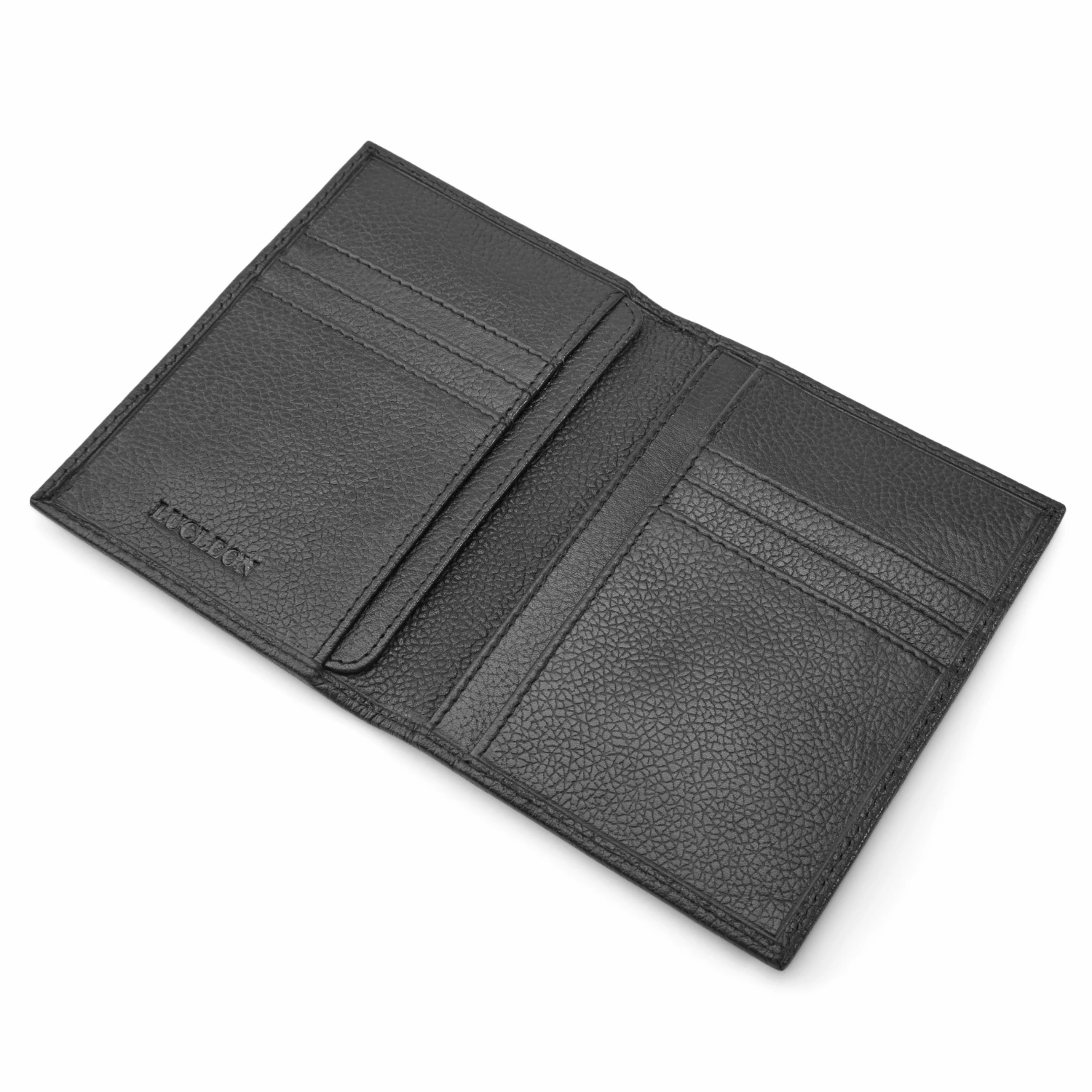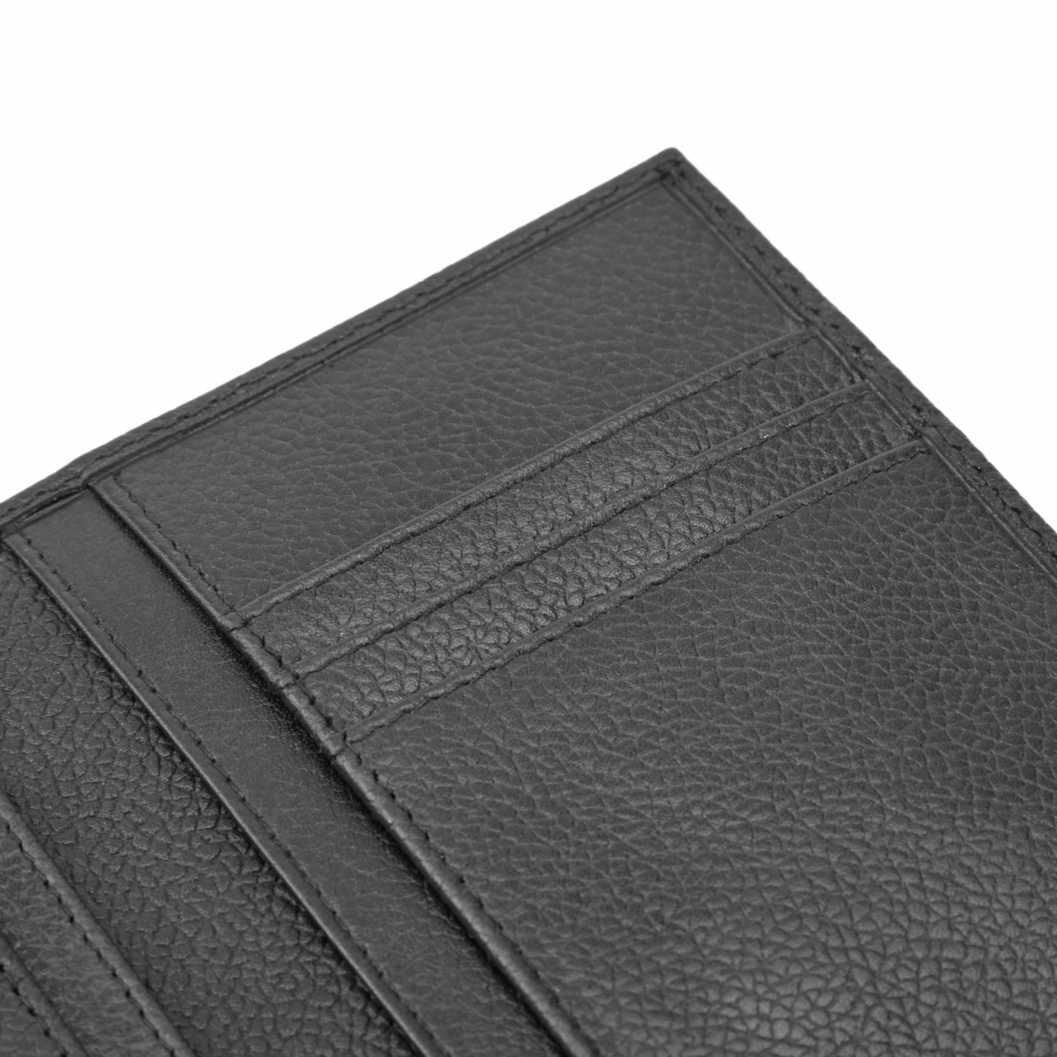 Made with a thin, sleek profile and genuine leather. The pebble grain finish gives a unique look and texture. The classic black leather gets softer with age and adapts to how you use and carry it, making it a one-of-a-kind piece.