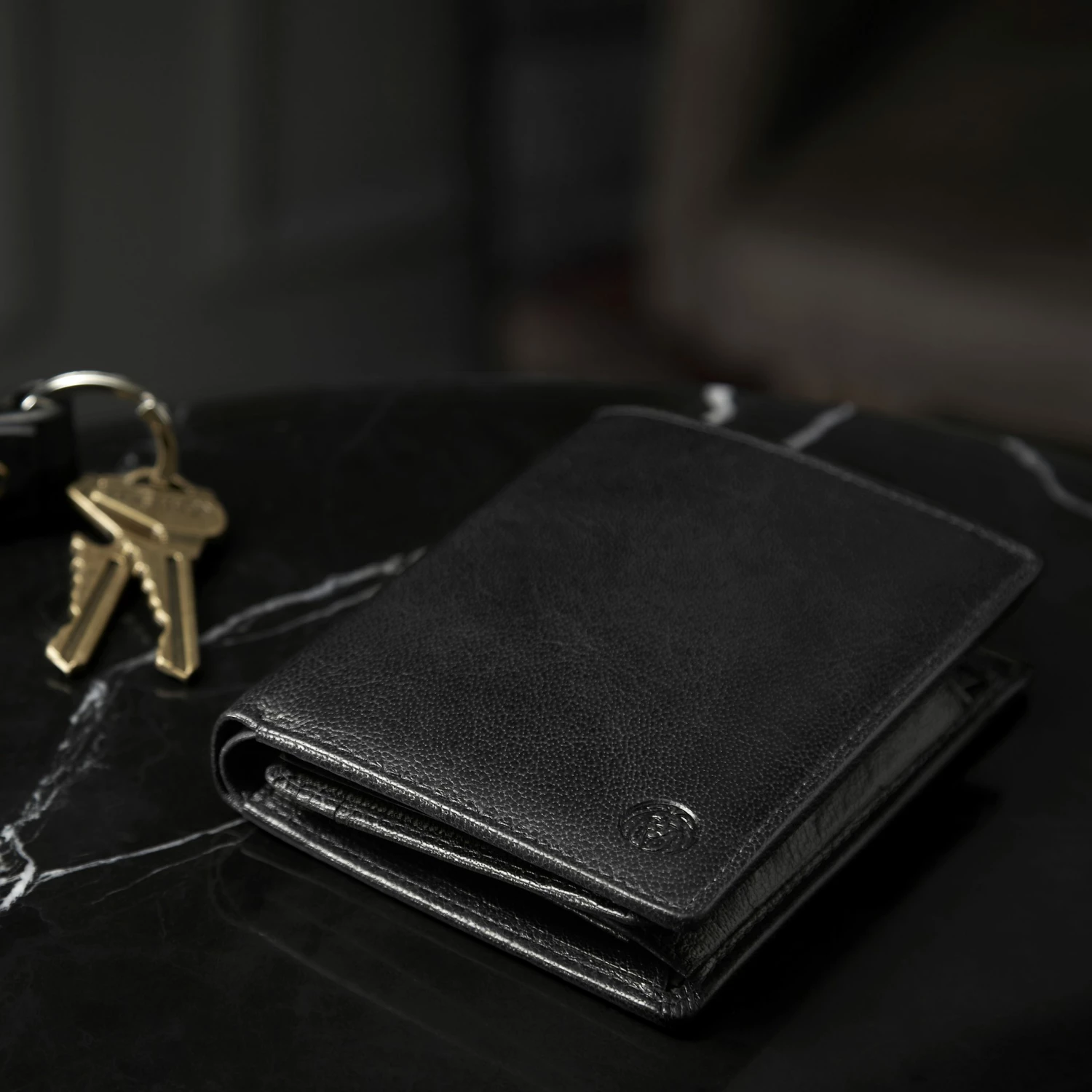 A stand-up piece for a stand-up man, this genuine leather wallet with striped cloth lining is high-quality, spacious and slim all at the same time. You will notice tiny wrinkles and imperfections on the leather. These arenโt there by accident. They were preserved so that each piece is entirely unique.