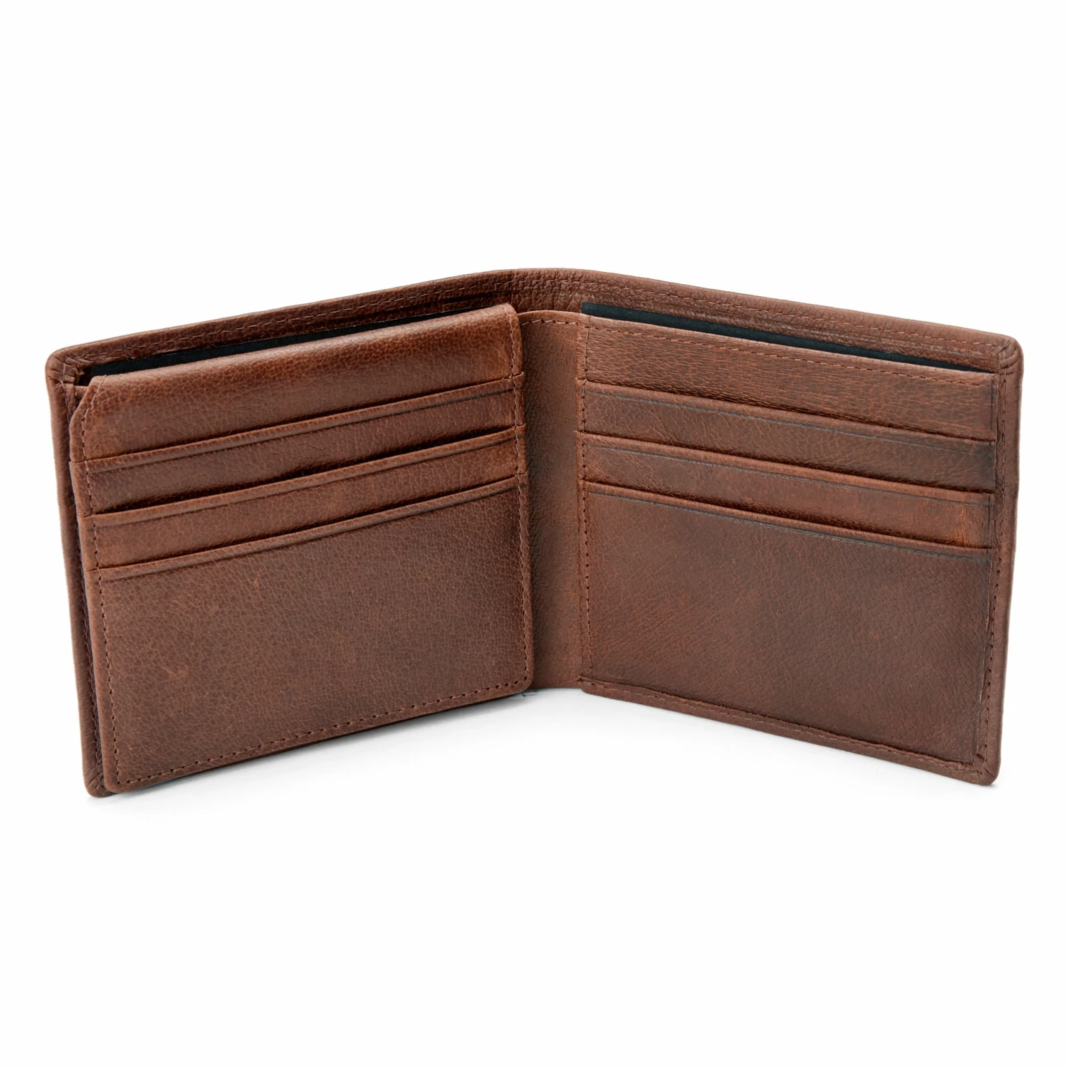 Great for sliding in your back pocket and heading out, this bifold wallet for men is crafted from durable tan leather with a slightly textured finish.