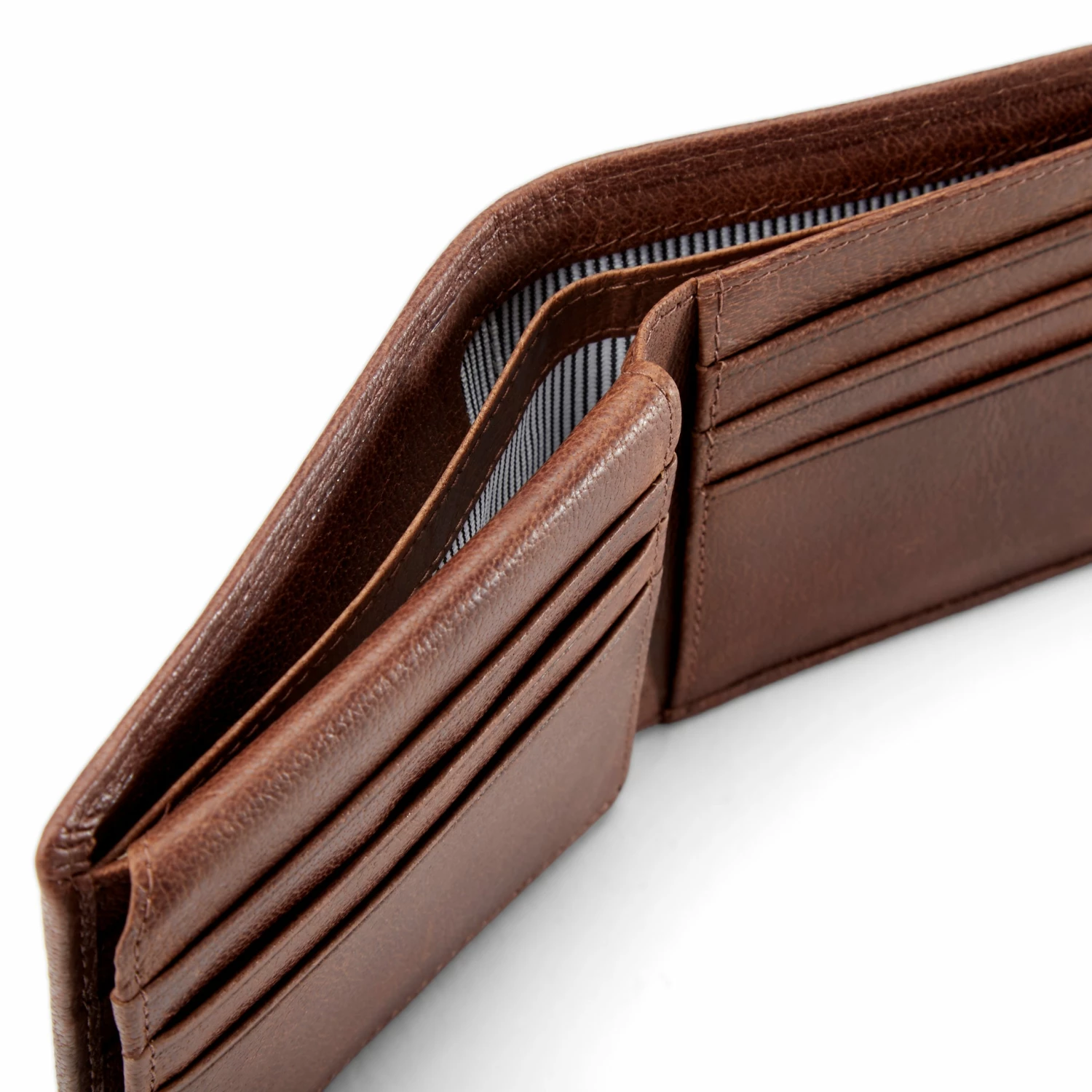 Includes designated card slots for 9 cards and a fold-out flap for your ID. Keep cash in the 2 currency pockets, while other cards or receipts can be stored in the 3 slip pockets.