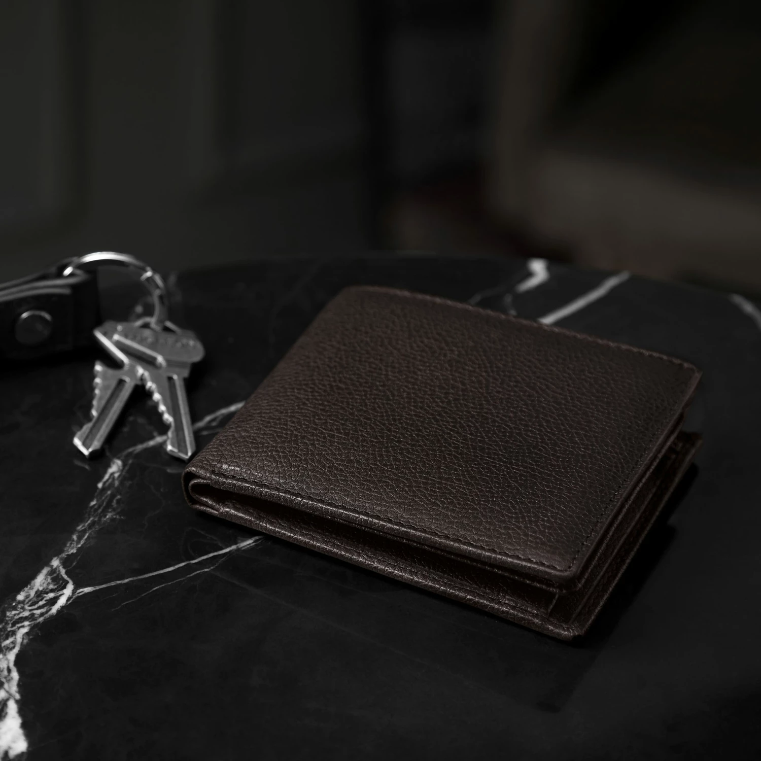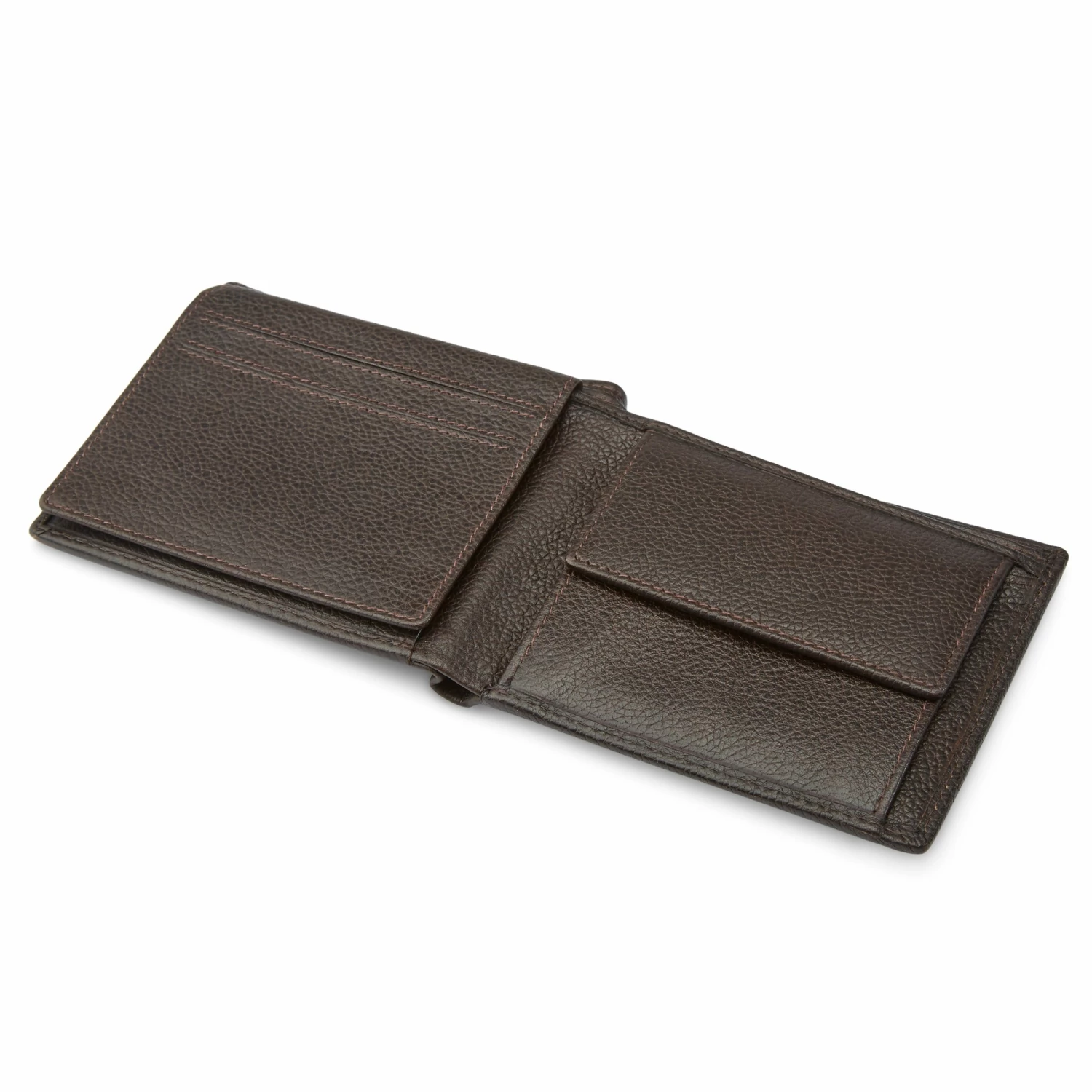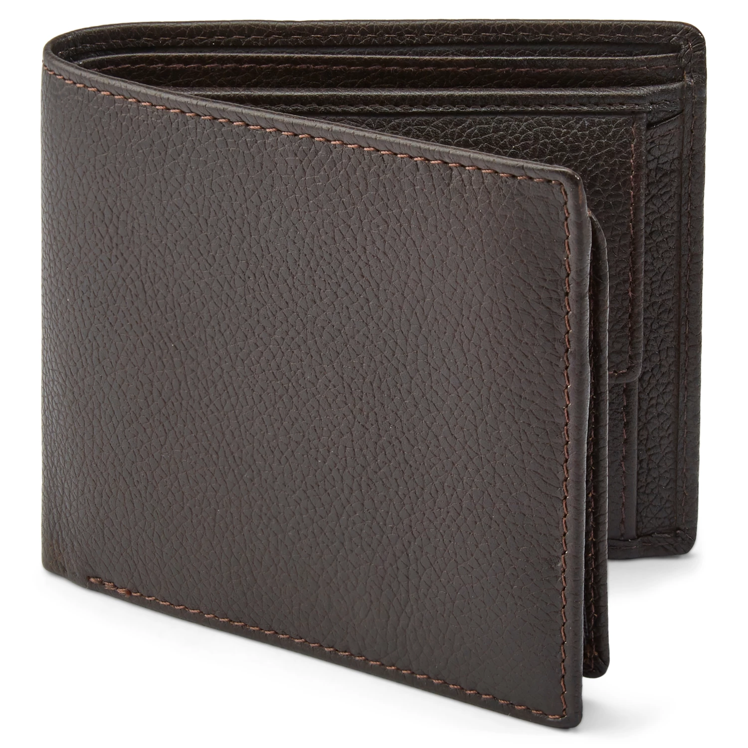 Every man needs a basic bifold wallet in his arsenal. Great for sliding in your back pocket and going, this simple design is crafted from durable dark-brown leather with a distinct pebble grain finish.