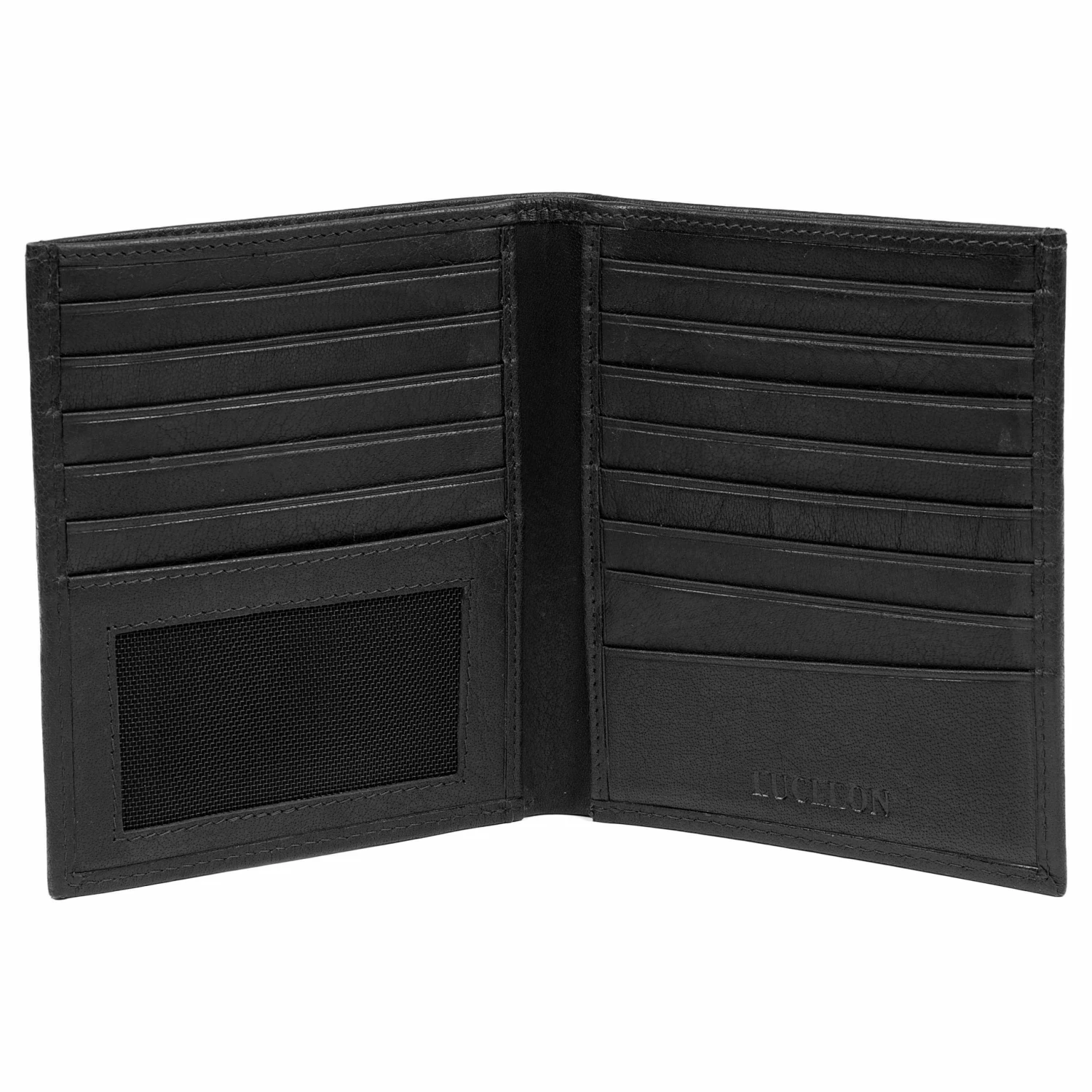 Do you carry more cards than you need? It doesn’t matter. This tall, premium quality leather wallet offers you 13 2-card slots, one ID window, a divided bill compartment, and 2 easy-access slip pockets. The slim design makes sure your pockets never bulge.
