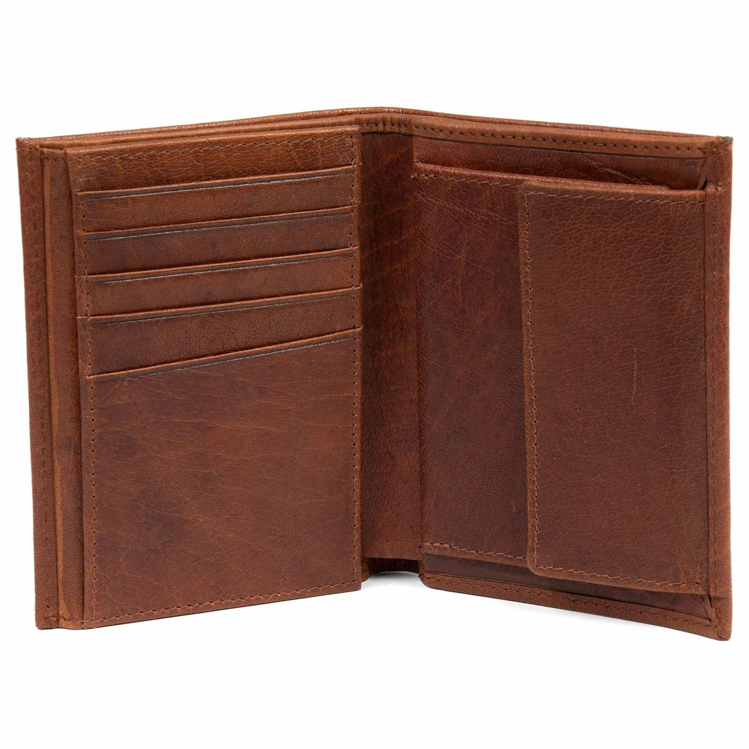 This classic, two-fold design wallet features 10 2-card slots, an ID window, a divided section for bills, and a coin pocket with snap closure. The tall, stylish design is easy on your pockets.