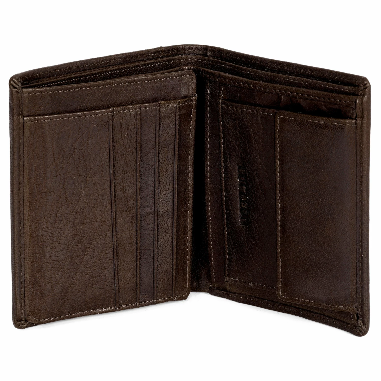 The main compartment is divided into 2 sections for storing unfolded bills. 8 card slots protect your cards, along with a separate ID window for your driver’s license. Distribute your valuables between the 5 easy-access pockets on the inside and outside, and just slip your change into the coin pouch.