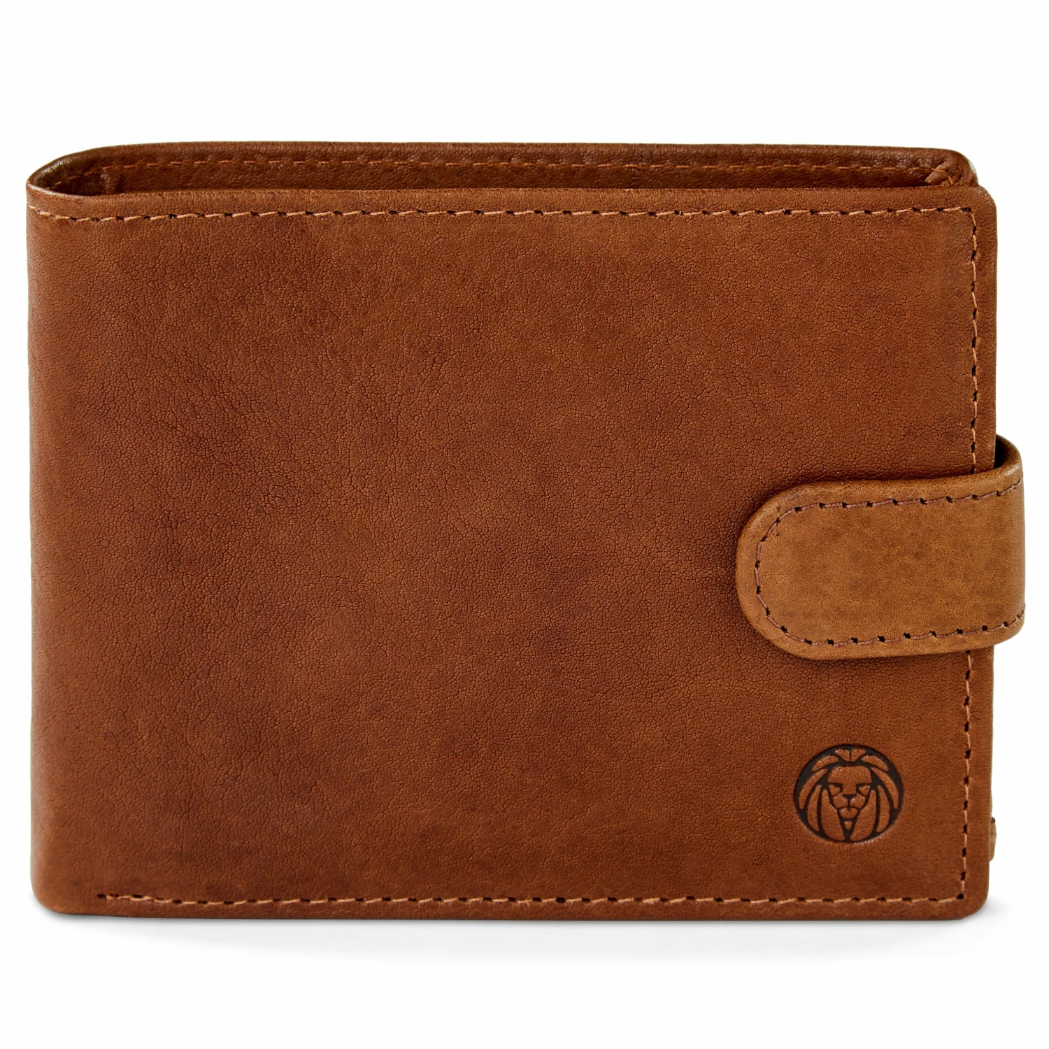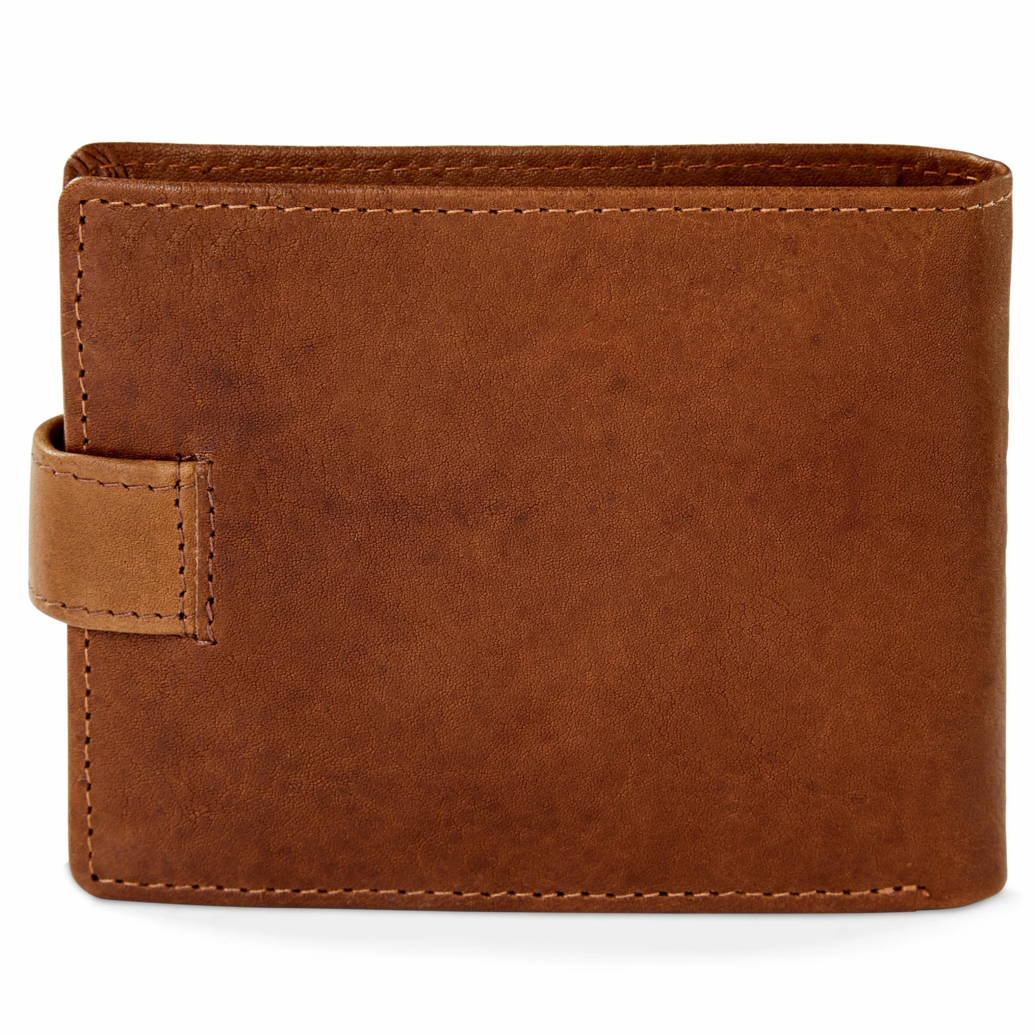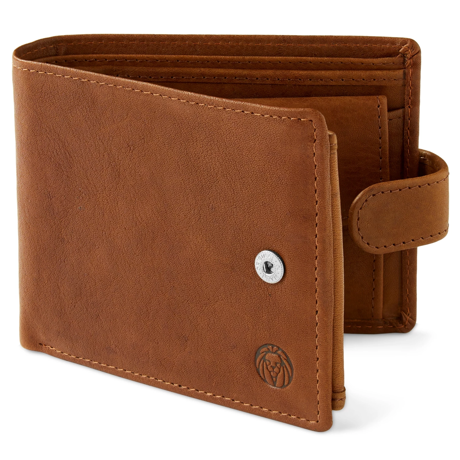 The bifold design closes securely with a snap closure and features 2 note pockets, 12 card slots, 1 coin pocket with snap closure and 2 ID windows inside. The interior fold-out flap snaps closed to keep it from flopping around when not in use.