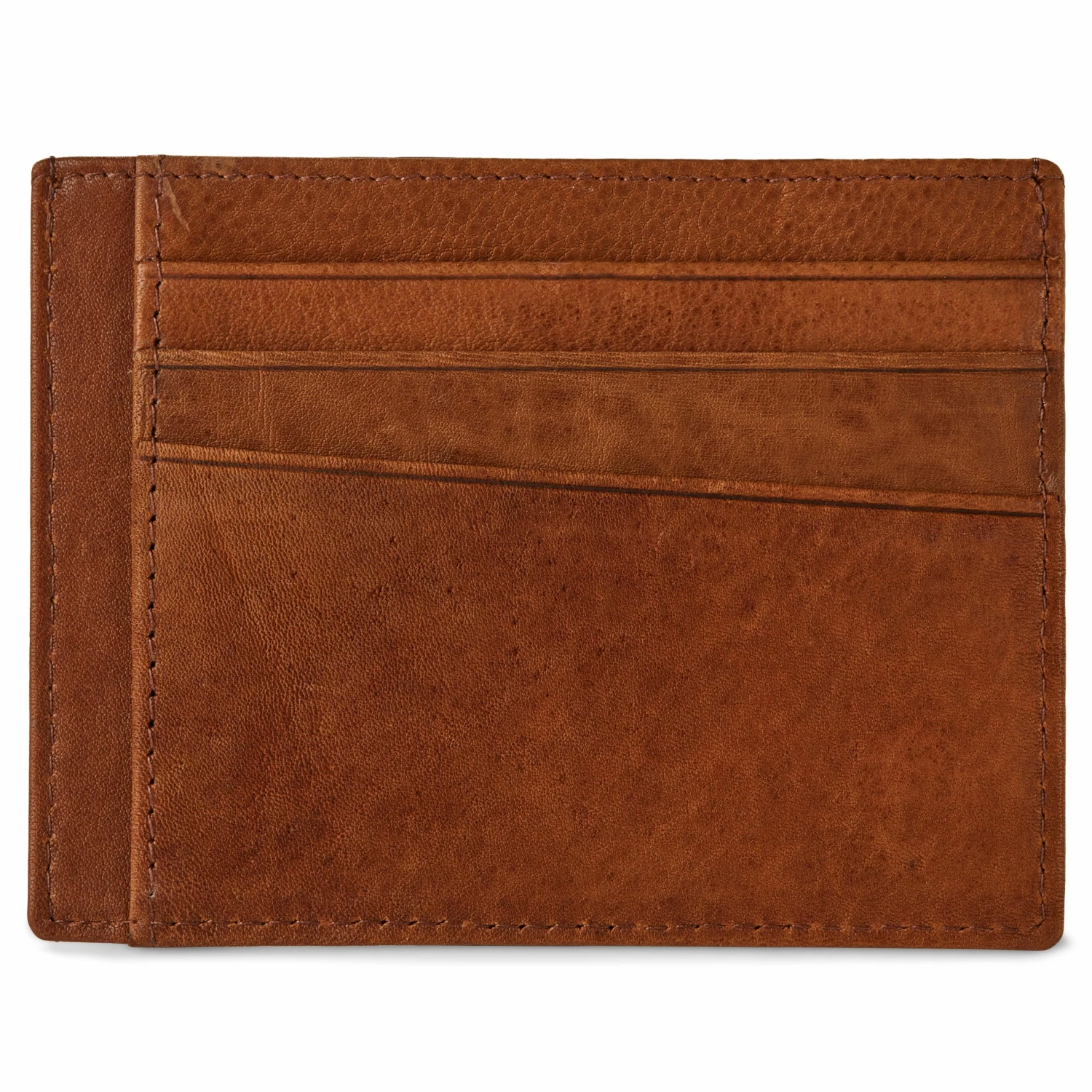 This slim, easy-to-carry card holder for men includes 6 card slots (3 on each side), a deep pocket on the top and 2 slip pockets on each side to hold folded cash.
